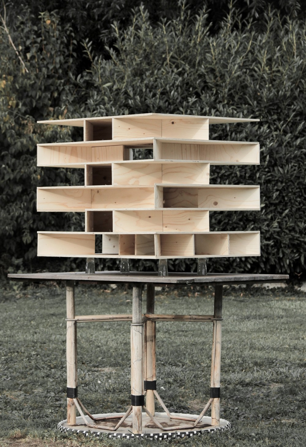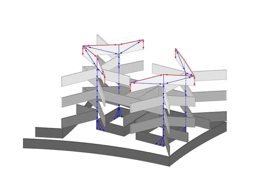 Le bâtiment est porté dans uniquement quatre points. Les structures s'étirent comme des branches d’arbres et s'étirent jusqu'aux fins les plus loin. Une réaction sculpturale au paysage. Selon l'étage le système tourne et fait devenir les dalles comme un élément central qui sont parfois soutenus et parfois accroche. Avec des murs d'environ cinq mètres de hauts cela permet les envergures très grandes et pourtant économiques pour obtenir des espaces utilisables de façon très flexible. La structure même s'ouvre de tous les côtés et la lumière solaire coule dans les espaces cellulaires du bâtiment le long de grands murs porteurs. Une légèreté et, pourtant, positionne. Une lumière variable du lever du soleil jusqu'au coucher du soleil, et de la lumière d'été jusqu'à la lumière d'hiver reflétée aux surfaces minérales dans l'intérieur du bâtiment.