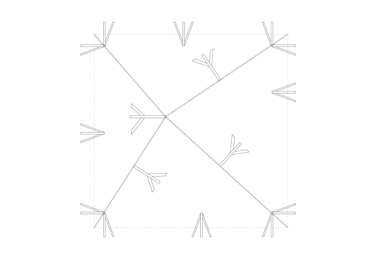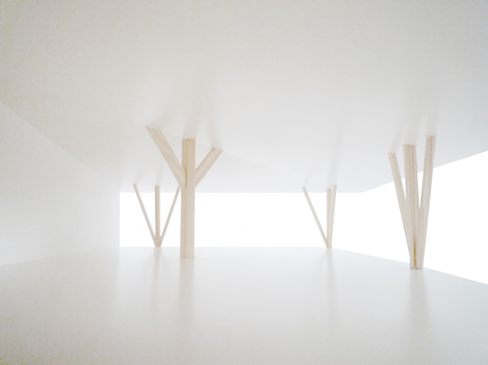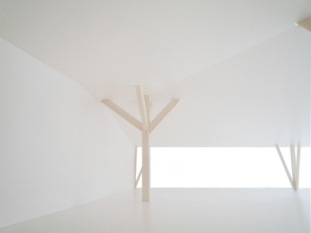 The house is somehow a little piece of nature, like a small forest with mature tree trunks. These strains are the pillars of the house. They support the roof and provide wide spaces stimulating the climate of the inner spaces. This diversity of the interior is underlined by the roof. It achieves a playful variety of rooms. These space conditions make it possible to use the surfaces in the most flexible manner. Together with the colourful and free standing wooden furniture it is possible to repeatedly obtain new floor plans and an optimal adaptation to current needs. The central cloakroom reminds a little of the Sulèr of an Engadin house. The high volume and versatile surfaces are kept very light. It provides access to all rooms and is a place of experience and exchange. The large windows surrounding the place are bringing lightness into the spaces. The children are experiencing a contemplation of their home and their seasons. Memories of its place.