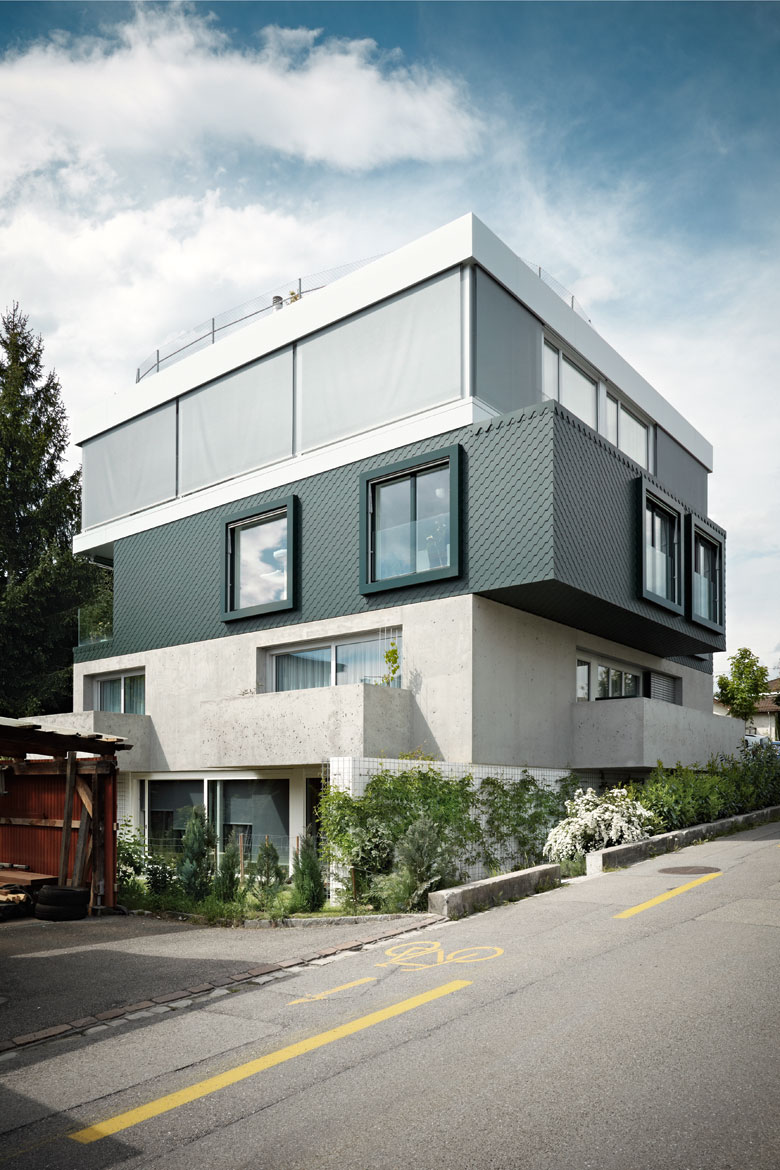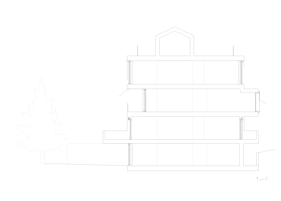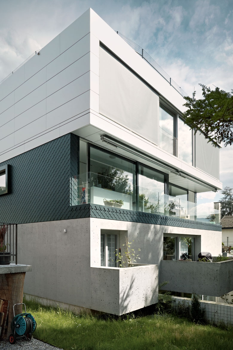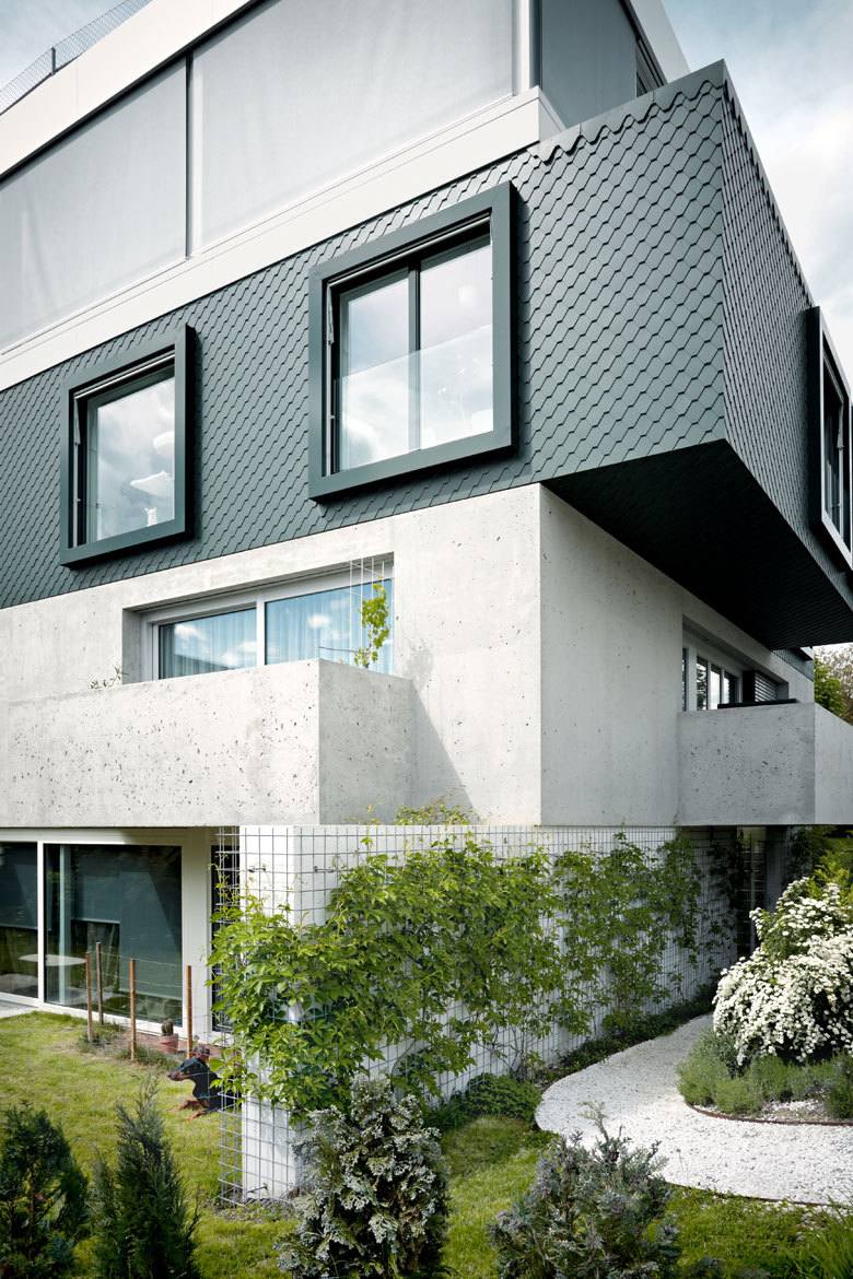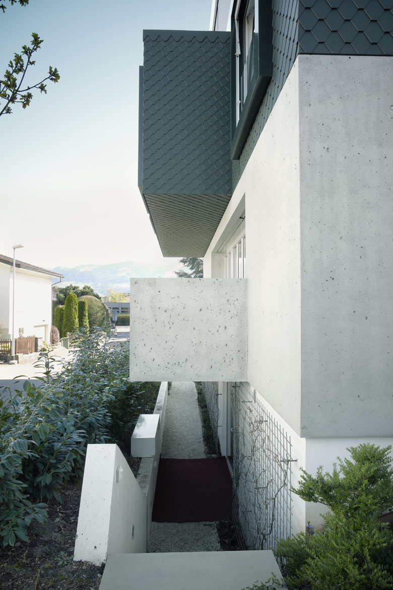 The project can be perceived as a „best of“ of typical suburban Swiss residential typologies. However, by stacking each of these types, one on top of the other, the result offers a rather surprising take on the rather challenging task of building a multi-level residential typology and offers an alternative to the ever-expanding Swiss suburban sprawl. The vertical stacking brakes down the scale of the building, allowing for a better integration with the surrounding neighbourhood, rather than seeking once again to create a new urban condition that would be confined to the limits of the plot. By considering the suburb as a new laboratory for experimental typologies, Fünf Häuser is an invitation for more density, social interaction and architectural diversity - more urban quality in the semi-urban.