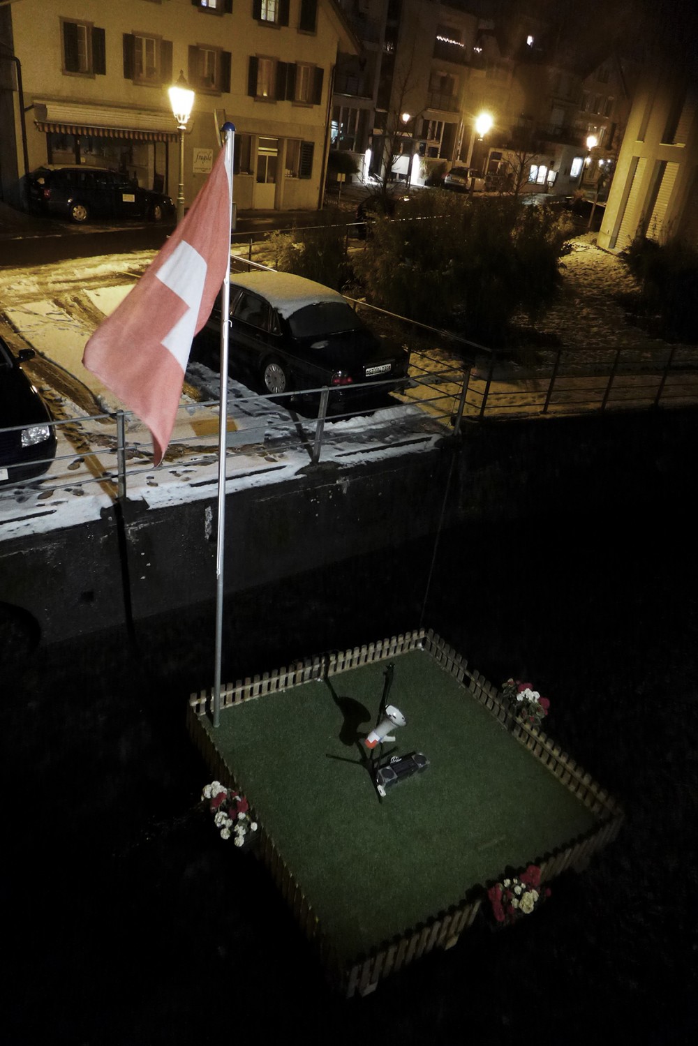 Von diesen fast schon fanatisch national anmutenden Zwängen lösen wir uns und bringen den Be- suchern ein 6.25m2 großes Stück dieses heiligen Bodens näher. Losgelöst von politischen Ansprü- chen und Allüren und den Vorbehalten der Schweizerischen Gemeinnützigen Gesellschaft (SGG) macht «Le Grutli Flotte» nun an verschiedenen Stationen Halt: zu Land und auf dem Wasser, in der Natur und in der Stadt und versucht so, sich allen Bewohnern dieses Landes wieder zu nähern, bis es schlussendlich als Exportschlager ins Ausland startet.