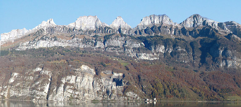 From certain points of the opposite side, one gets an unforgettable view of the mountains of Churfisten and the Walensee. A massive curtain of stone reflected in the deep and turquoise water. Calm and reverential. Like time is standing still.