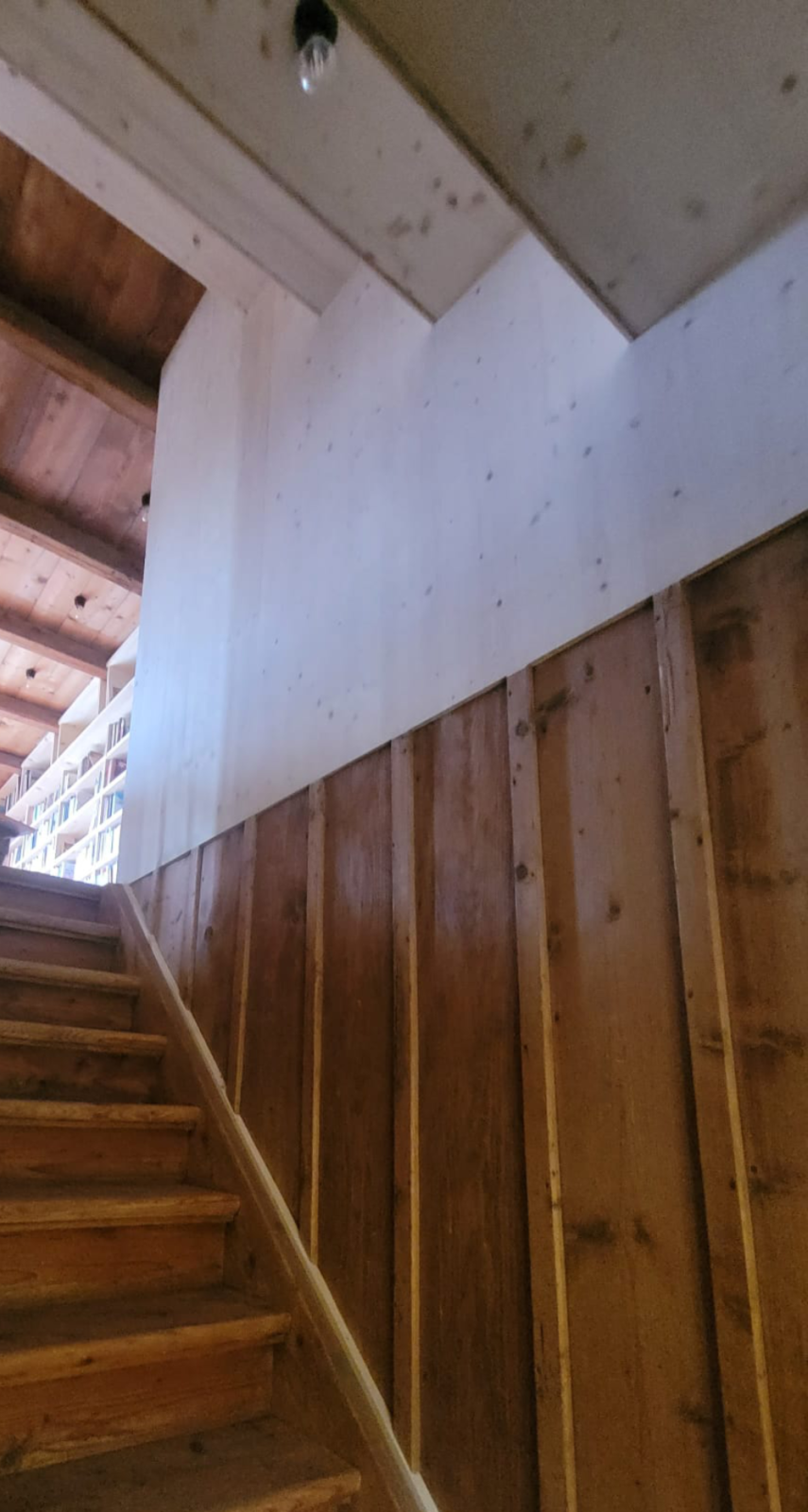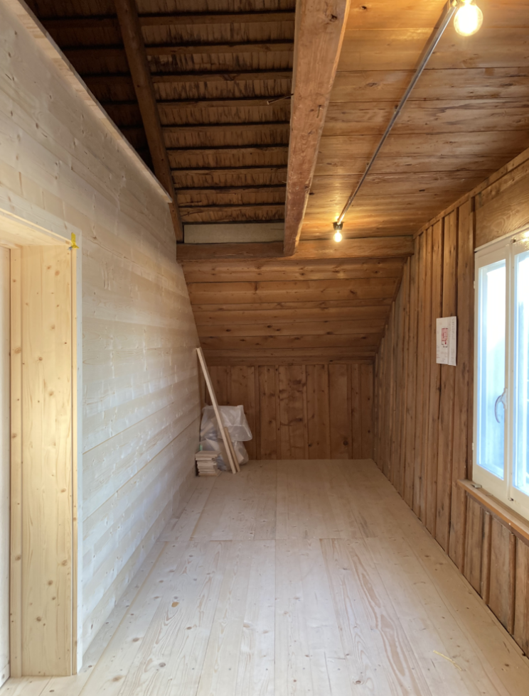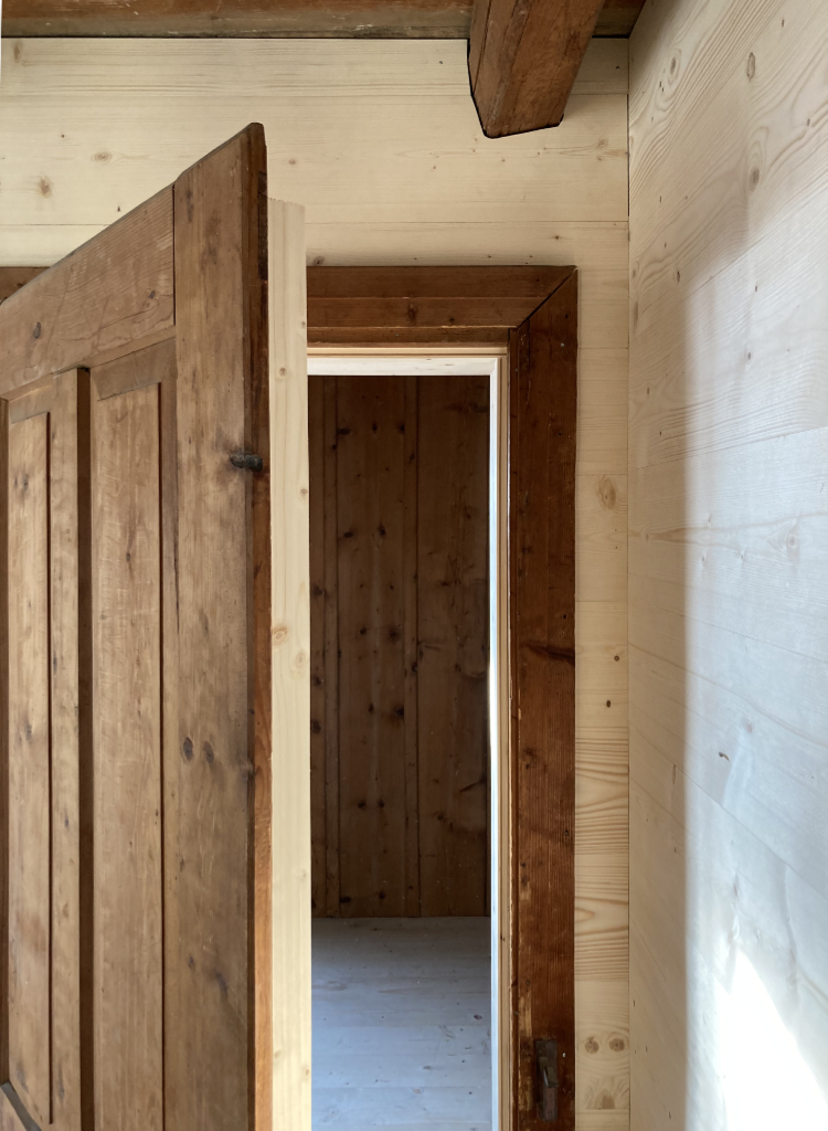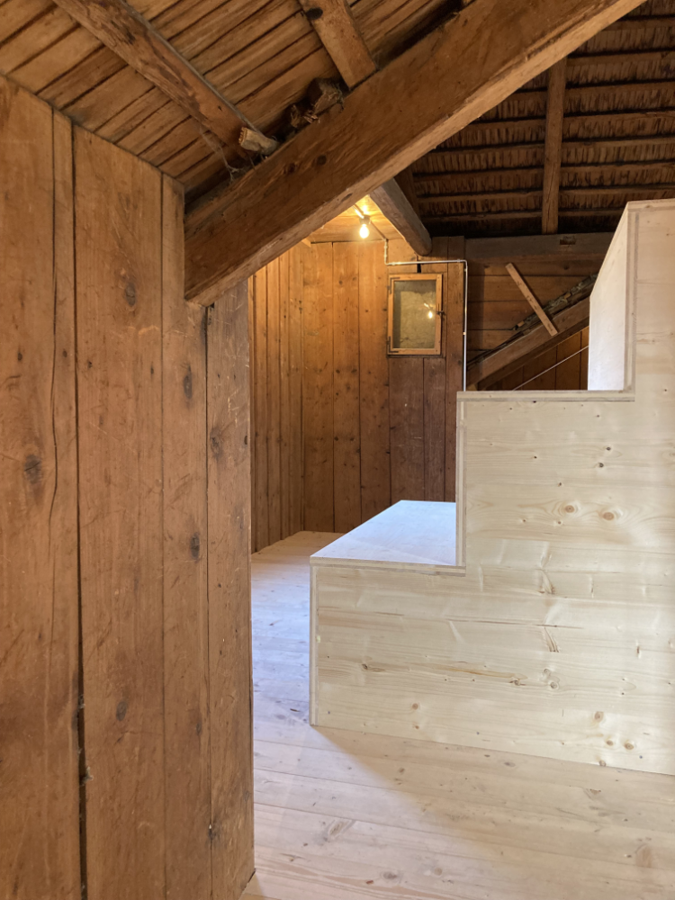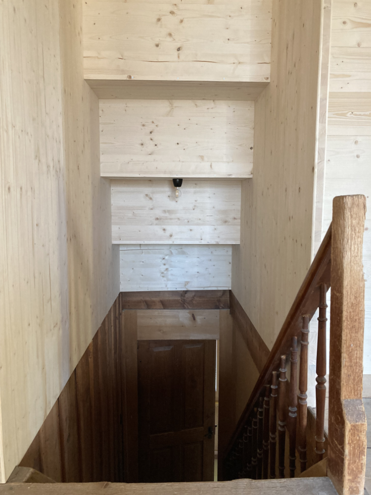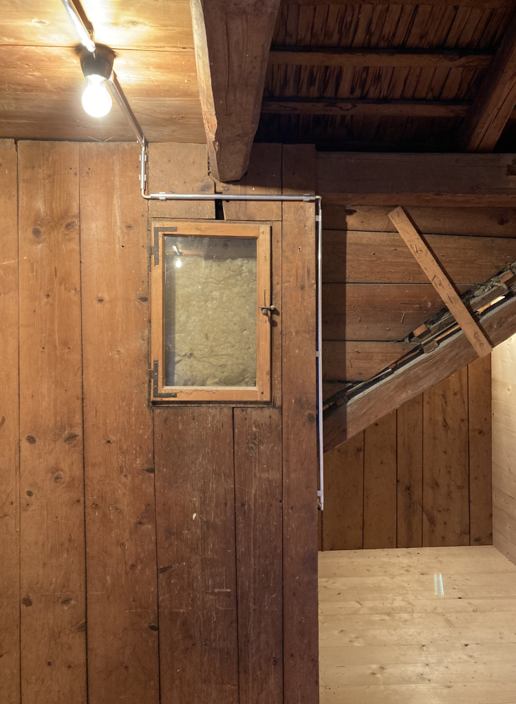 Der Sanierung wurde als nachhaltige Antwort in Bezug zum Thema Suffizienz bewusst einiges vorenthalten. Es war zentral wichtig, dass sämtliche Prozesse des Bauens auch später noch abgelesen werden können, um so der nächsten Generation, ohne Plandokumente u.a. DXF und DWG, eine einfache Einsicht, ohne digitale Grundlage, zu ermöglichen.