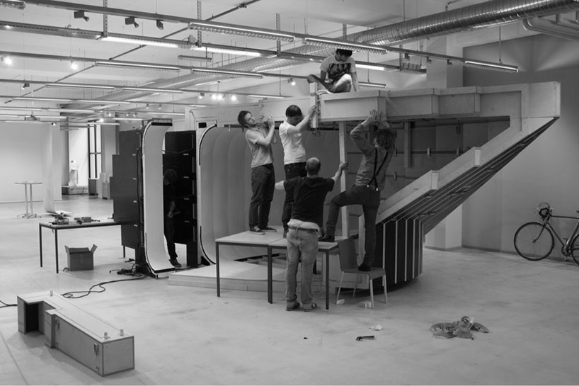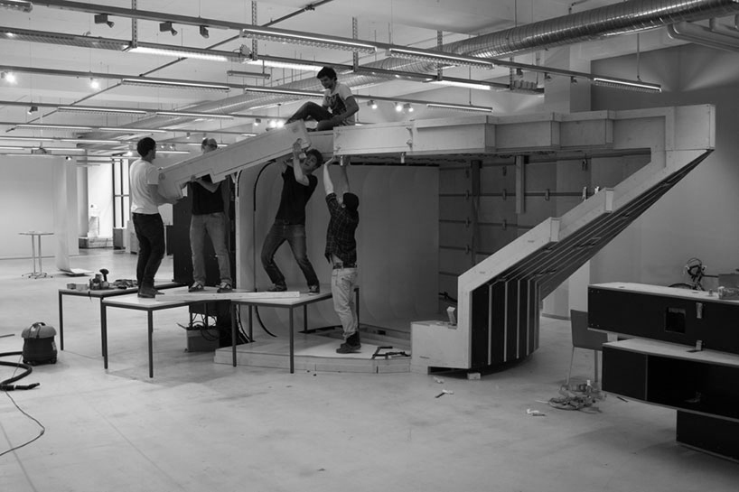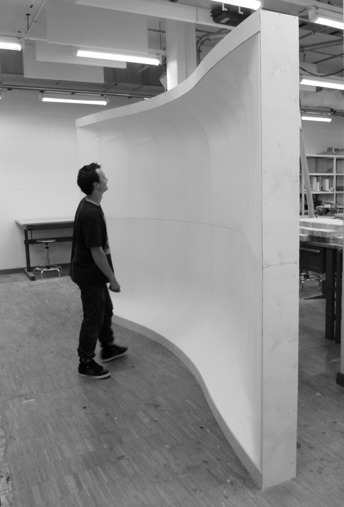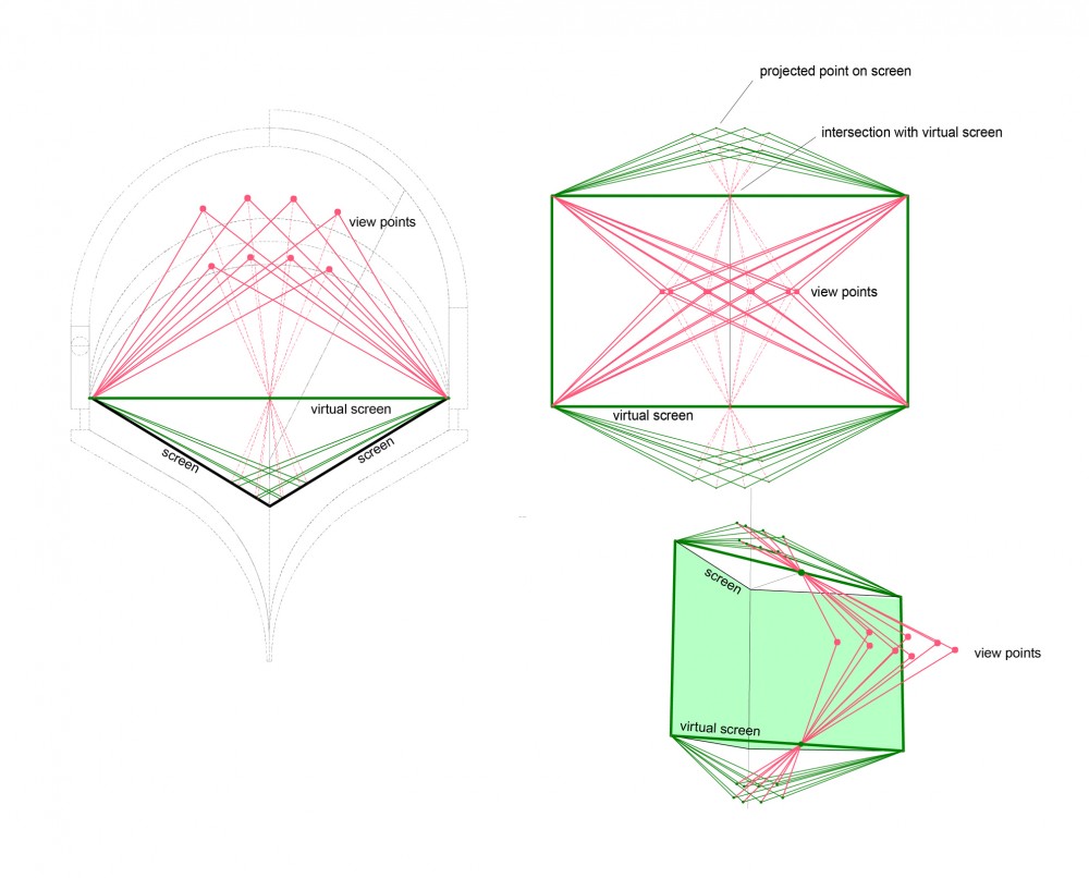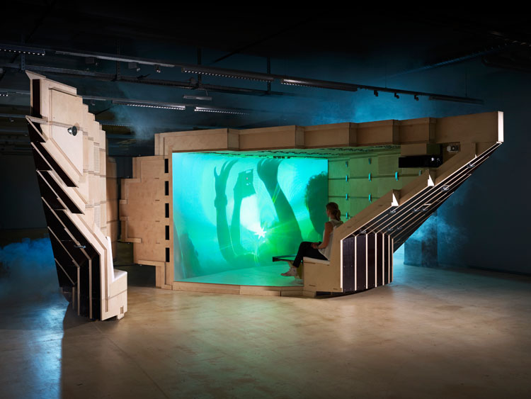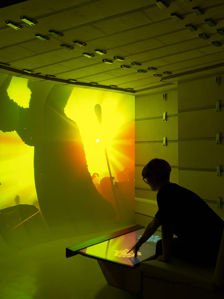 The Montreux Jazz Heritage Lab is a habitable architectural module that allows the user to plunge into 45 years of jazz, blues and rock concerts in the form of digital archives. The shape of its projection surface, precisely curved in order to enhance embodied user experience, finds its precedents in trompe l’œil effects brought to excellence in the baroque age. This device therefore draws reference from a specific pictorial heritage, combining a corporeal experience of visual content with the archives of musical heritage. This architectural module was developed at EPFL ECAL LAB in 2011-2012.